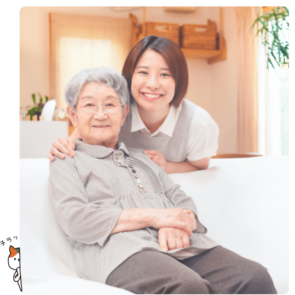 ホームヘルパーなどのスタッフがご自宅を訪問し、利用者様にできる限り自立した日常生活を送っていただけるよう身の回りの必要な支援を行います。